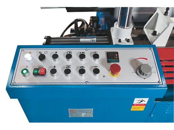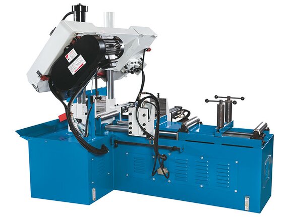 ABS 280 TThis fully automatic horizontal band saw of the ABS T series is perfect for precise straight cuts in larger workpieces. The construction convinces with a rigid and extremely stable double column frame, which also forms the basis for the fixed clamping jaw of the vise and integrates the lifting cylinder of the saw frame. The main drive is via low-maintenance V-belts. Feed, workpiece clamping and the stroke of the saw frame are driven hydraulically. The automatic material feed does not require any programming and is set using a contactless stop system.