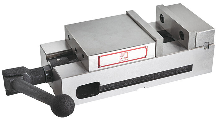 Finely finished machine vise with pull-down design for high-precision mechanical gripping.
