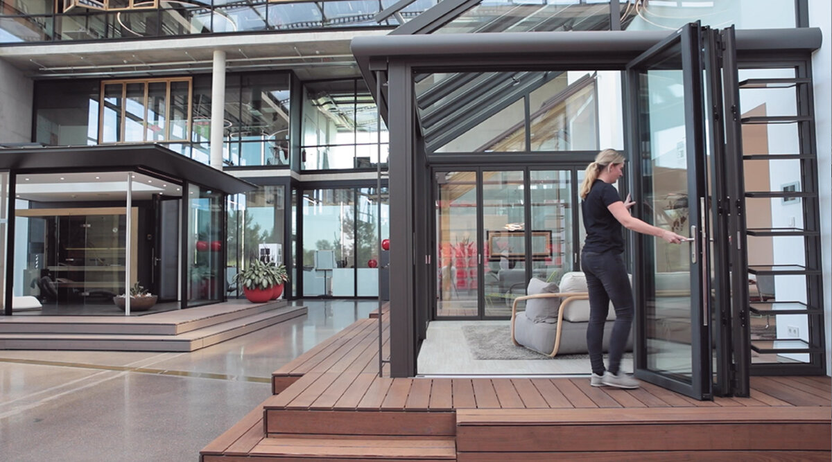Solarlux, in Melle, Lower Saxony, manufactures construction elements and is the world market leader for folding glass doors like those used for VIP lounges in sports stadiums or modern office buildings. Founded in 1983, the company exports its products to over 60 countries, including the USA, the Netherlands, and England. Renowned architects like Daniel Libeskind also use Solarlux glass construction elements for their projects.