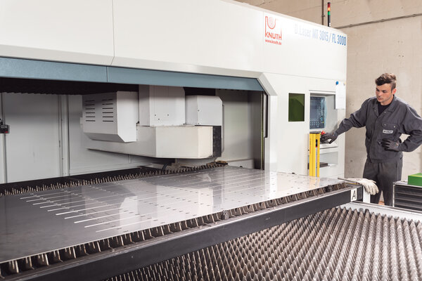 A D.Laser MT 3015 laser cutting system from KNUTH is used to cut large-format metal plates for Kitzinger container washing systems.
