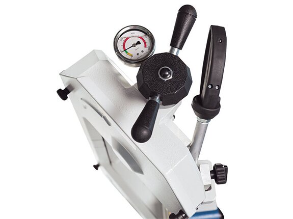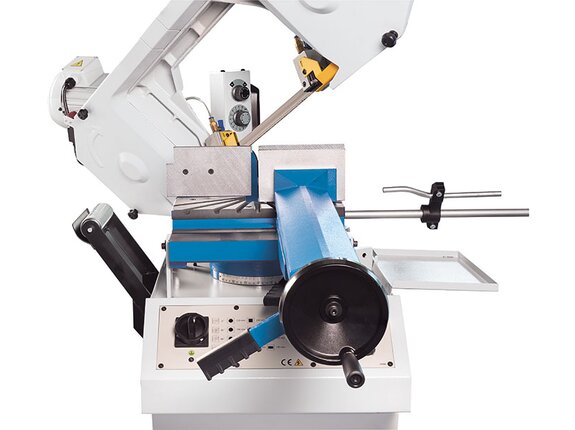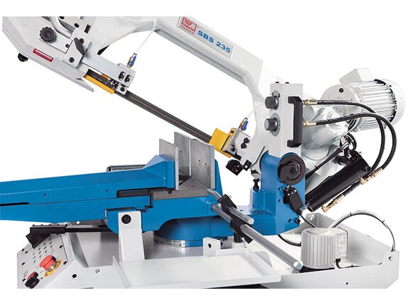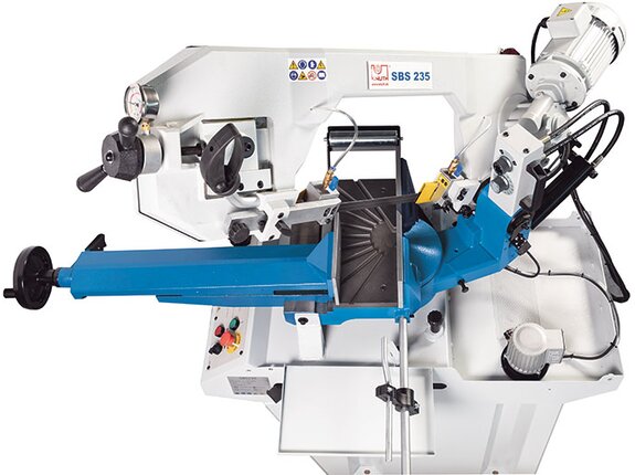 SBS 235The SBS Series Universal Workshop Band Saws are compact machines with swiveling saw frames. The saw frame swivels to right and to the left. The user can guide the saw frame by hand or via the hydraulic valve controlled hydraulic feed. Their design and equipment make these machines very suitable for efficient machining of small batches.