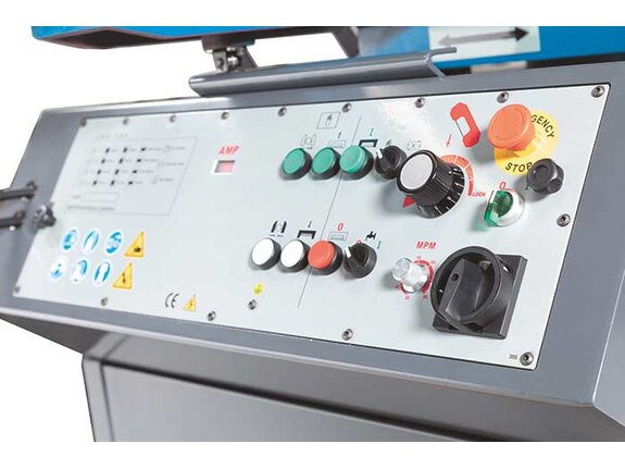 SBS 355The SBS Series Universal Workshop Band Saws are compact machines with swiveling saw frames. The saw frame swivels to right and to the left. The user can guide the saw frame by hand or via the hydraulic valve controlled hydraulic feed. Their design and equipment make these machines very suitable for efficient machining of small batches.