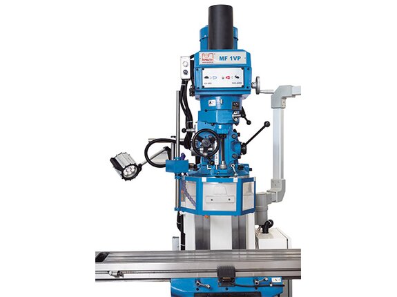 MF 1 VP (R8)La serie de máquinas de fresado multiusos MF1 convence por su diseño y es indispensable en muchos talleres de reparación, así como en departamentos de formación y mecanizado. El eje X puede regularse de forma continua con un dispositivo de avance y el cabezal vertical móvil con un amplio rango de revoluciones regulables trabaja desde el acero hasta los metales no ferrosos. Dentro de los accesorios estándar se encuentran un avance de pinola automático y una sujeción de herramientas neumática, así como un indicador de posición.